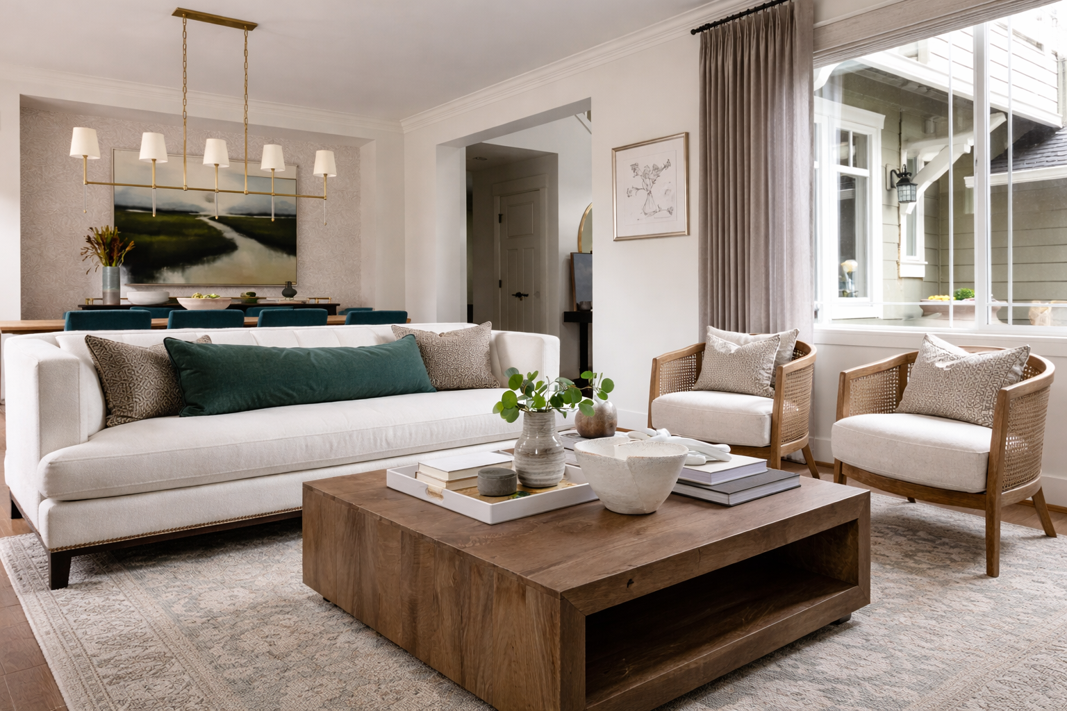 Our approach focused on creating cohesive, light-filled interiors that feel elegant yet comfortable for short stays. Soft neutral tones were layered with warmer materials and subtle texture to add depth and character, while clean-lined furniture and considered lighting choices ensured the property feels contemporary, durable, and easy to maintain — without being overly trend-led. Each space was carefully designed to flow seamlessly into the next, creating a sense of balance and continuity that enhances the guest experience.