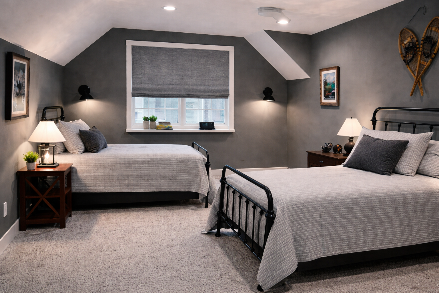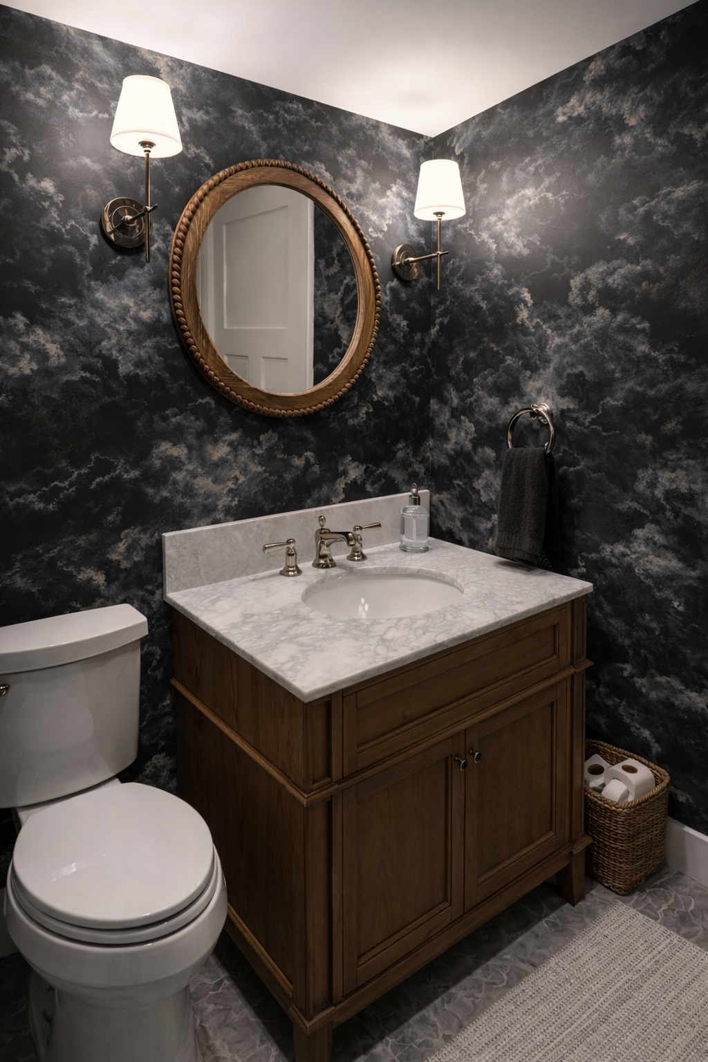 The bedrooms were designed to feel calm, refined, and grown-up, acting as a retreat from busy daily life. Thoughtful furniture choices, subtle contrasts, and carefully curated artwork helped to create spaces that feel both personal and polished. The bathrooms were approached with the same mindset, blending statement design choices with timeless finishes to achieve a bold yet elegant result that feels luxurious without being overstated.